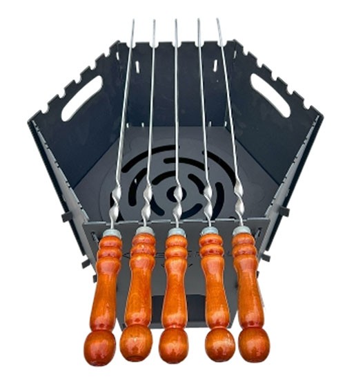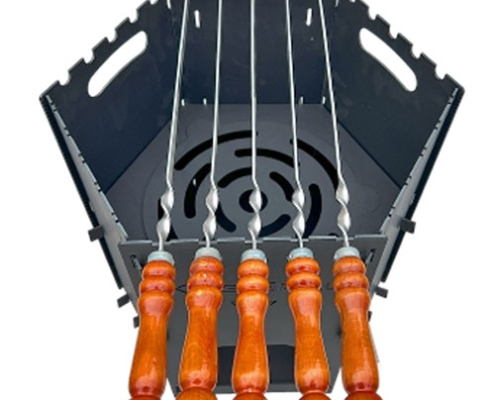 Конструкция наших чаш для костра позволяет пользоваться привычными шампурами. Изделия выполнены из горячекатаной стали толщиной от 3мм. Более тонкий металл мы не рекомендуем использовать, тк есть риск деформации под воздействием высоких температур при сжигании дров, в отличие от мангалов, в которых, в качестве топлива используется угли.