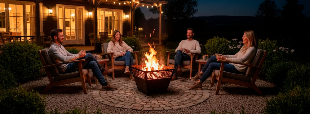Трудно устоять перед соблазном насладиться видом живого огня, находясь под открытым небом в комфортных креслах в кругу родных, друзей и близких.