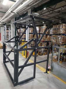 Модуль безопасной загрузки включает перекидные ворота, которые могут иметь различные конструкции, часто с рамой, использующей три оси вращения. Эта трехосевая система позволяет предотвратить «вылет» рамы за пределы мезонина, что особенно важно для обеспечения максимальной безопасности.