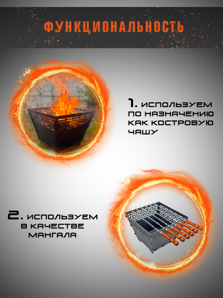 Форма не только придает ей оригинальный внешний вид, но и обеспечивает равномерное распределение тепла, что позволяет приготовить еду быстро и качественно. Да, вы можете не только наблюдать за полыханием пламени и греться, но и полноценно готовить шашлык, как на мангале.
